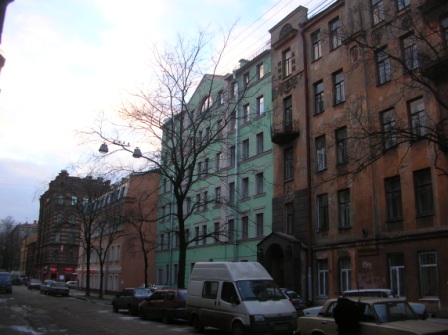 Новый дом сравнительно неплохо "гармонирует" с соседним зданием - Домом Т. М. Любищевой (Канонерская, 19-21).
